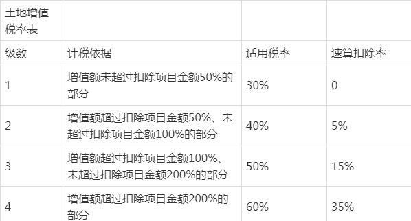 除了上面这些零散的税种以外,房地产公司最大的一个税来了,就是土地增值税,这个税厉害到什么程度呢?首先我们来看看他的税率: